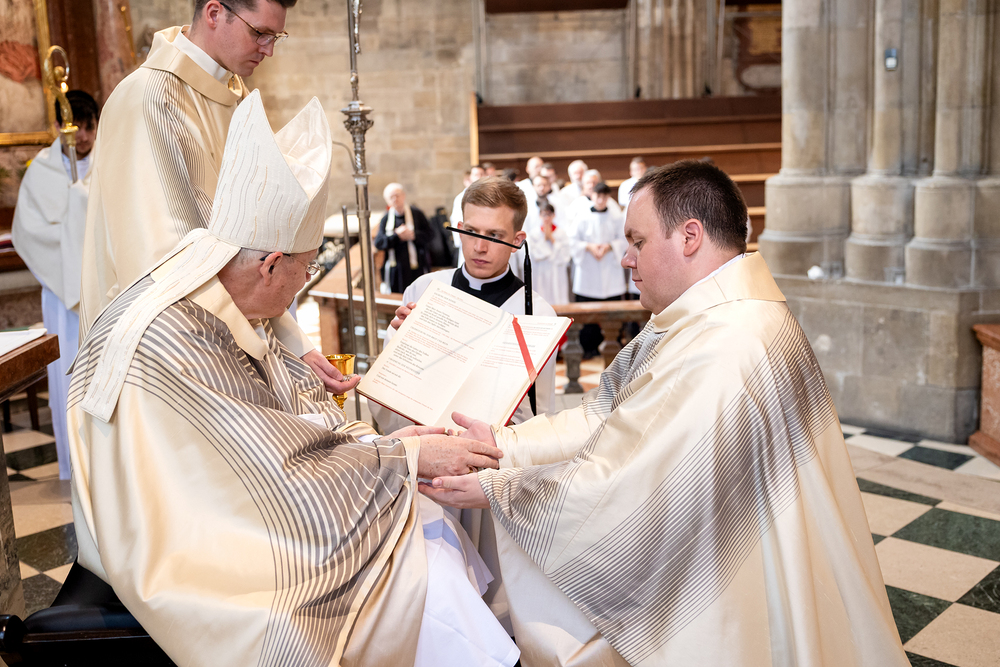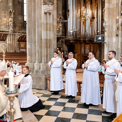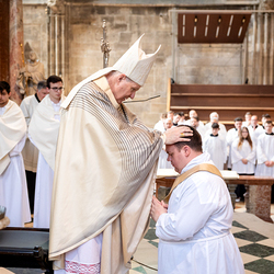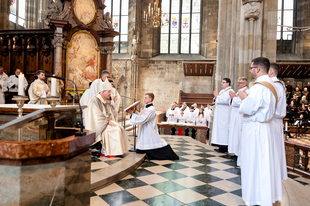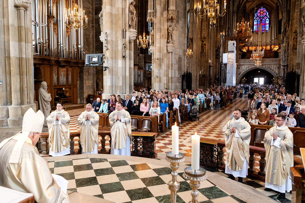 Am 14. Juni 2025 wurden fünf Diakone der Priesterseminare Wien und Redemptoris Mater im Wiener Stephansdom durch Kardinal Christoph Schönborn OP zu Priestern der Erzdiözese Wien geweiht. Wir waren mit der Kamera dabei.
