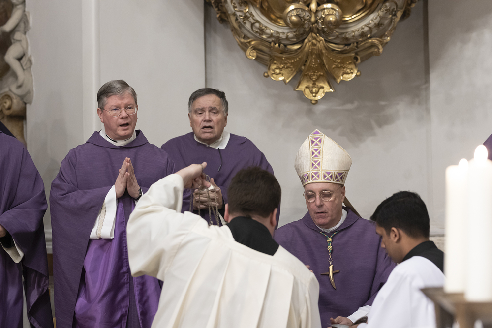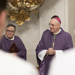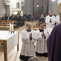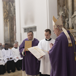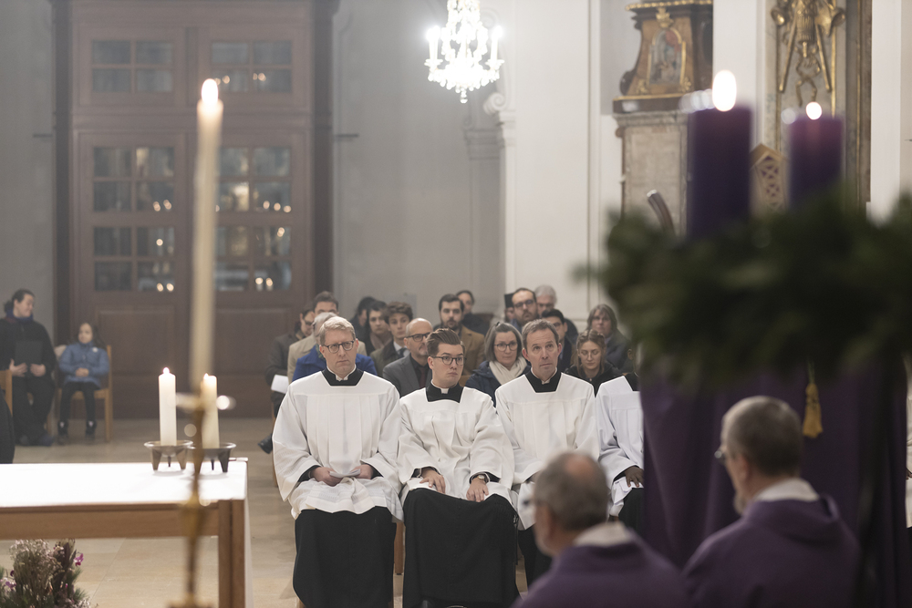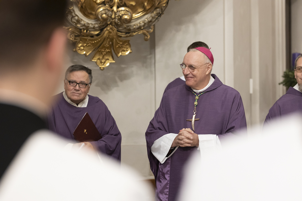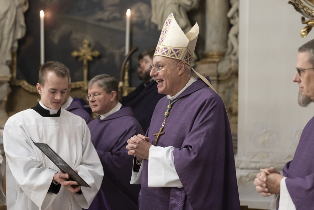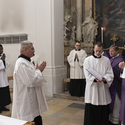 Beauftragungsfeier von Wiener Priesterseminaristen zum Akolythat und Lektorat durch Bischof Ägydius in der Seminarkirche des Priesterseminars.