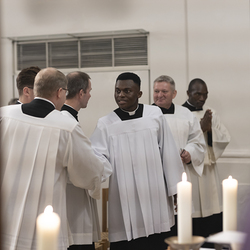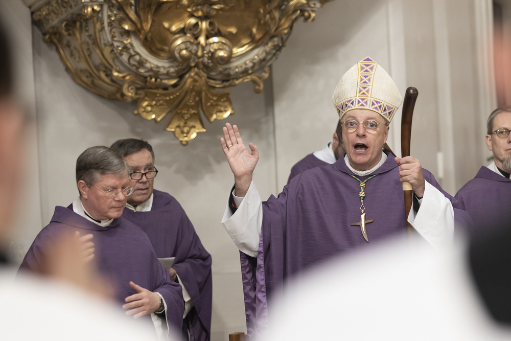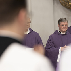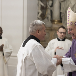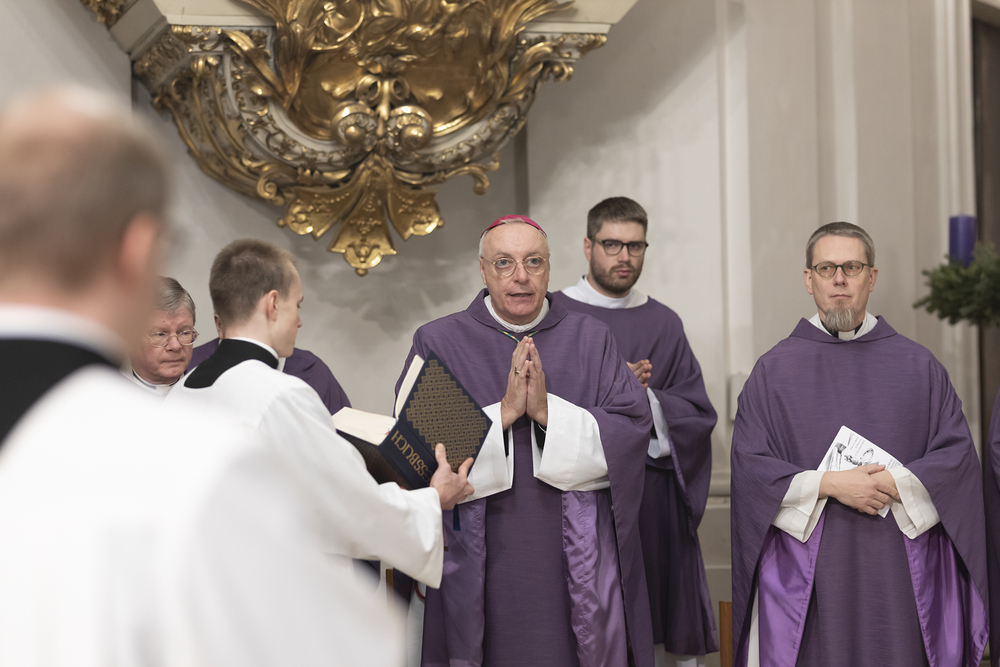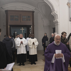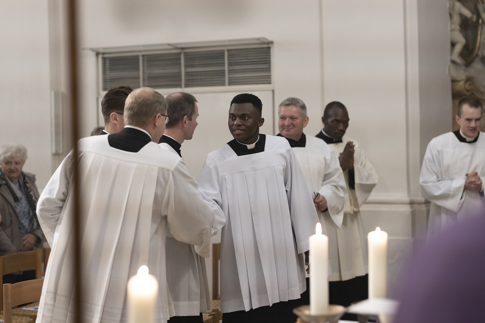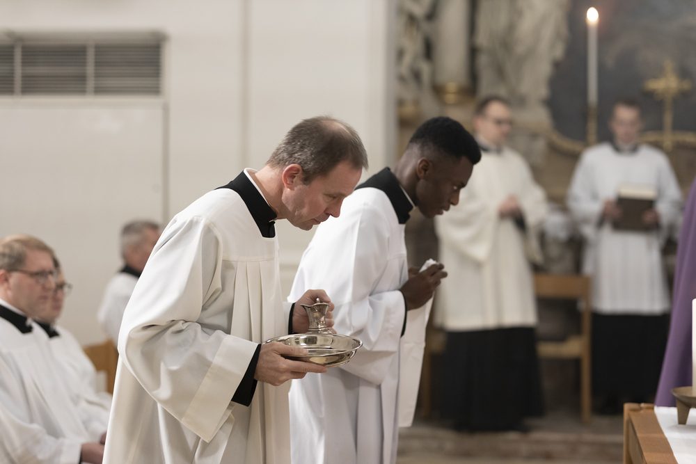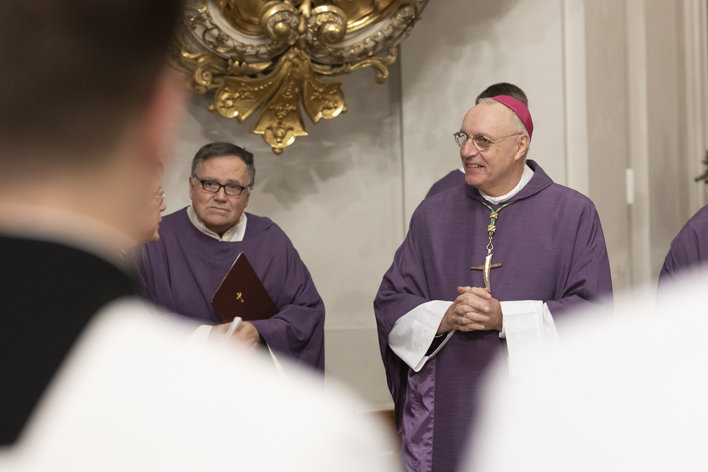 Beauftragungsfeier von Wiener Priesterseminaristen zum Akolythat und Lektorat durch Bischof Ägydius in der Seminarkirche des Priesterseminars.